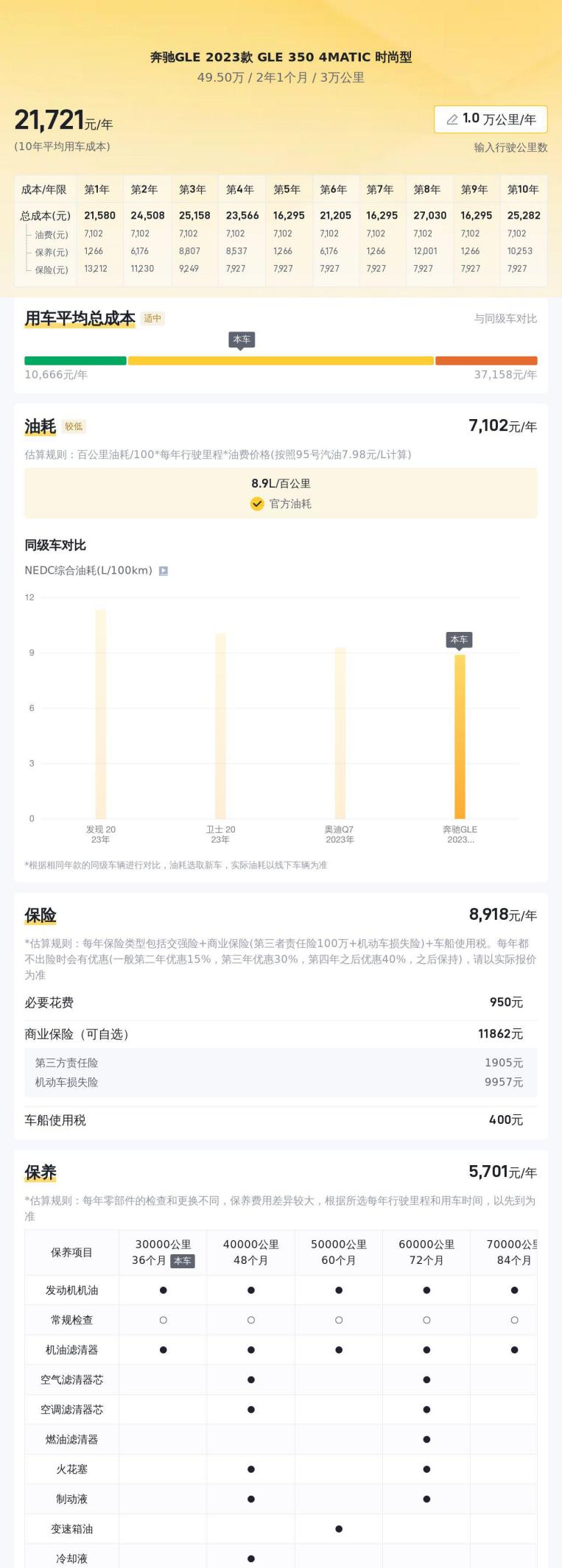 还有用车成本的问题。别以为买了车就完事了,后续的油费、保险、保养,那都是真金白银。根据估算,这辆GLE 350每年的用车成本大概在2万多。这还不算万一出了点小剐蹭的维修费用。所以,在决定买车之前,一定要把这些后续的费用考虑进去,看看自己的钱包能不能承受。
