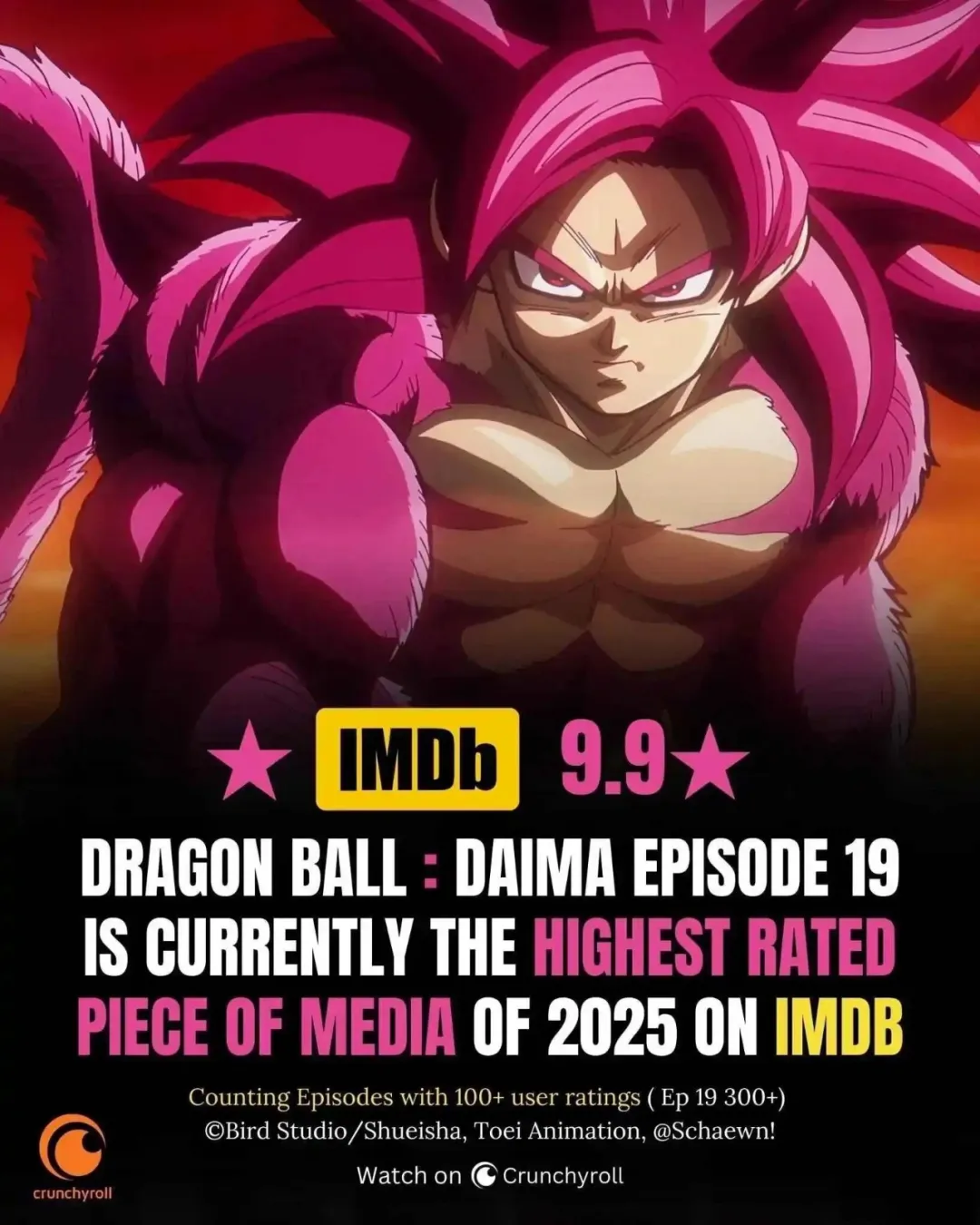 成年超3贝吉塔和成年超4悟空出现以后,《龙珠大魔》的IMDB评分直接上升到了9.9,这也打破了之前所有《龙珠》动画的纪录,一个见证历史的时刻诞生了。