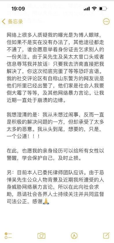 1月21日凌晨,吴兴涵在社交媒体上晒出视频,他已前往济南当地的派出所报警。