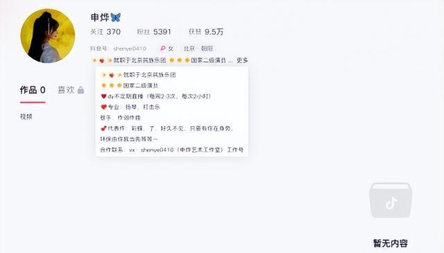 现在申烨的已经删除了所有抖音视频,而她清空的不是内容是走过的来时路,上面显示的3.5万点赞数就是她留下的痕迹。