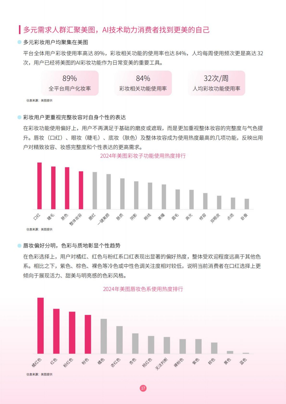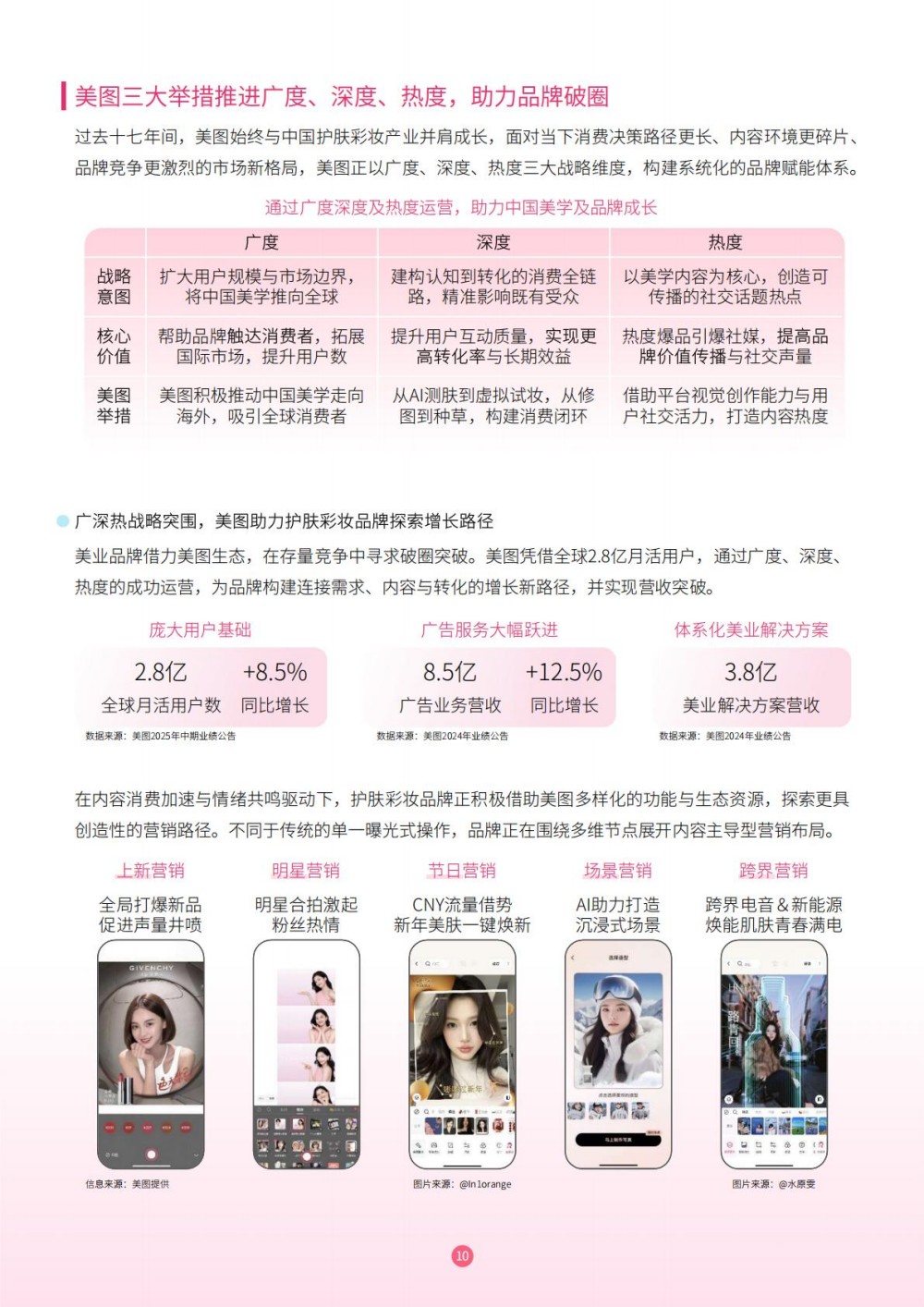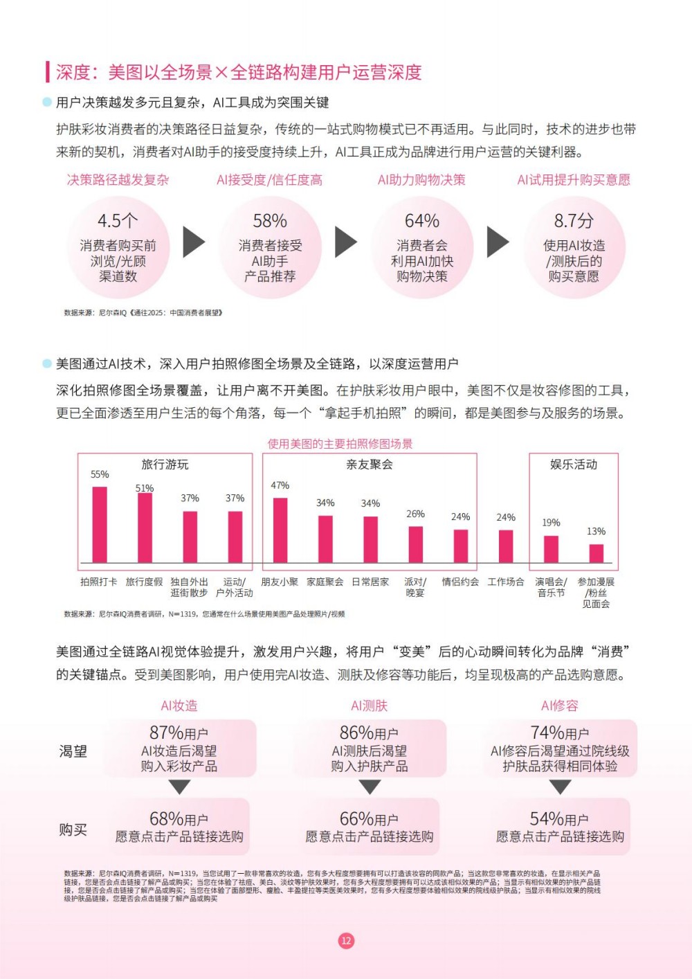 美图凭借十七年影像技术积累,以 “广度 × 深度 × 热度” 战略构建赋能体系,2.8 亿月活用户覆盖 83% 护肤彩妆人群。其 AI 测肤、虚拟试妆等功能,打通 “拍照 - 美化 - 心动 - 购买” 闭环,86% 用户试用后有购买意愿。