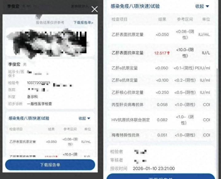 面对全网质疑,小澈赶紧连夜去医院挂急诊,1月11号晒出了电子检测报告,上面写着HIV和梅毒都是阴性,其他指标也基本正常,还说会补纸质报告。可这报告没平息争议反而火上浇油——有人说电子报告底色不对劲,模糊的地方很奇怪,像P的;还有人说有些医院抽血不用人脸识别,可能是找人代检的,甚至连医院连夜改查询系统、新增手机验证都被扒了出来,说登记的还是小澈自己的号码。
