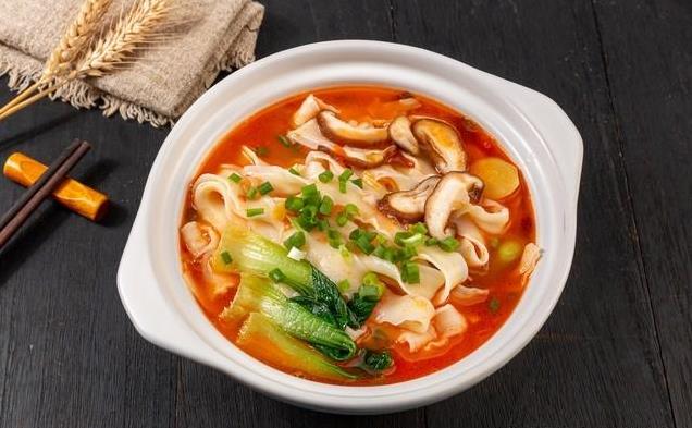 刀拨面用两头带把的刀拨面,面用冷水和制,面条三棱形,吃着筋软可口,不易粘连,浇入荤素浇头或炒着吃均可。