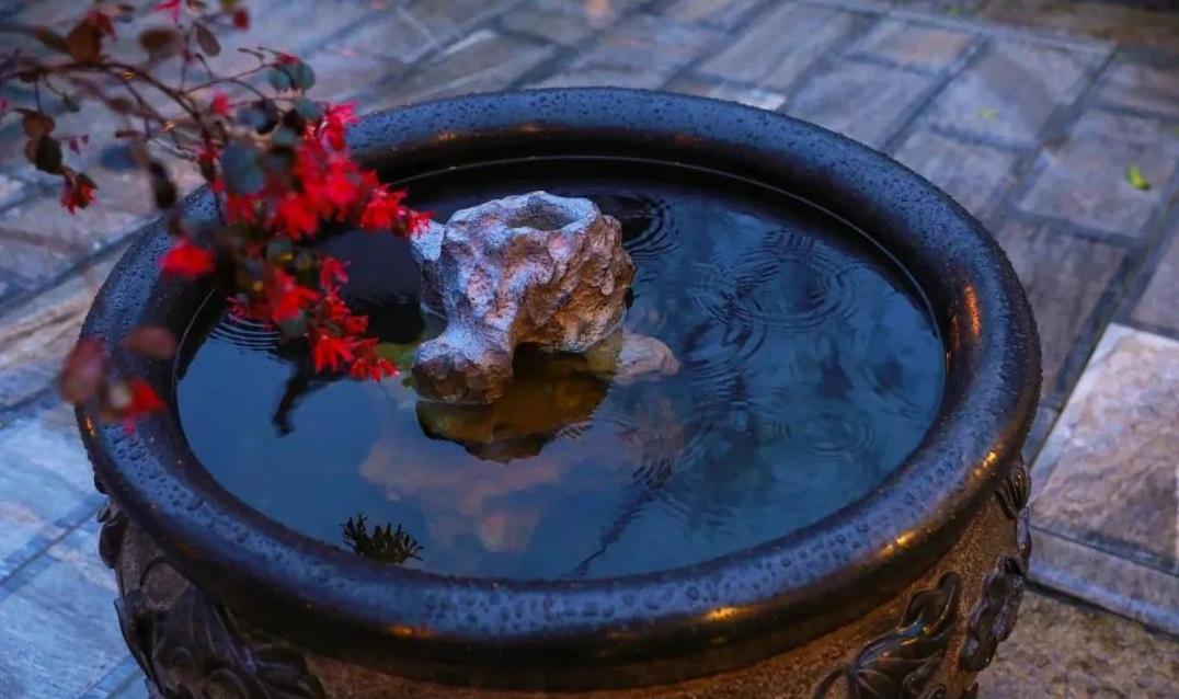 你有所不知,这缸不仅是收集雨水的地方,更是一个自然的小舞台。