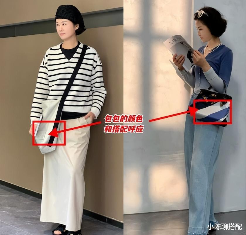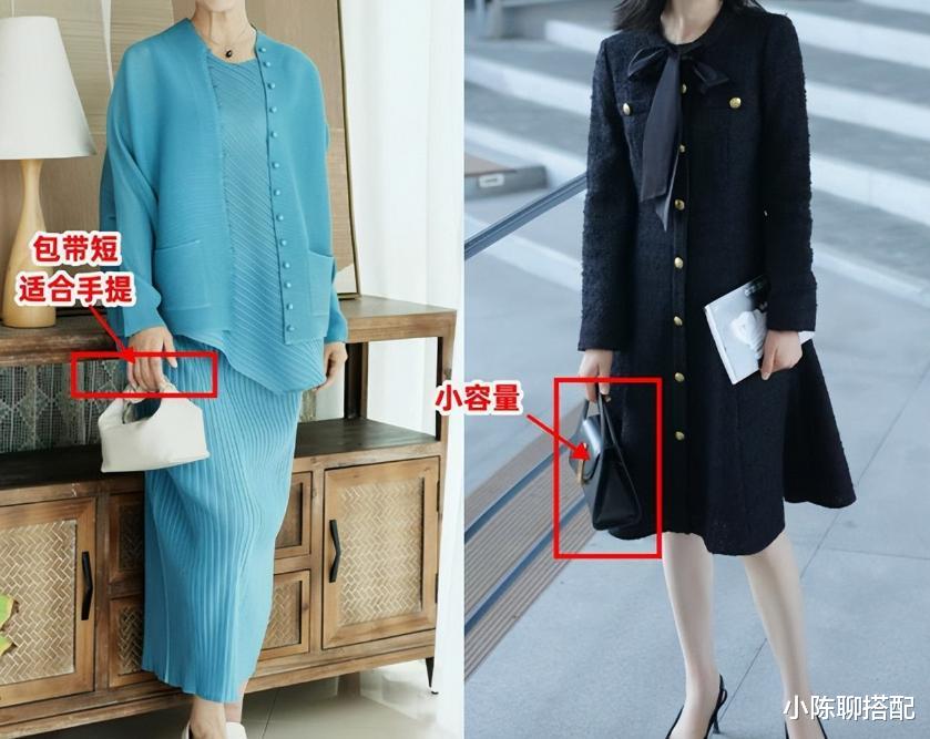 相对应的,一些款式造型不当的包包,或者材质、面料不佳的包包也会反向的拉低我们的造型档次,让我们看起来既显老又显土。
