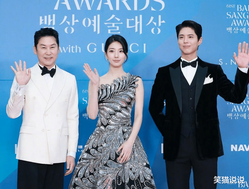 朴宝剑也穿着一身黑色礼服亮相红毯,跟裴秀智一起亮相红毯。俊男美女一起同框亮相,可谓十分养眼。