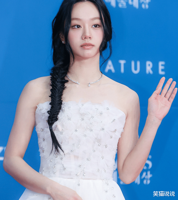 既是演员又是歌手的女艺人IU也亮相红毯,她穿着白色镂空刺绣白裙,衬得整个人都白得发光,也让不少粉丝直呼好美。