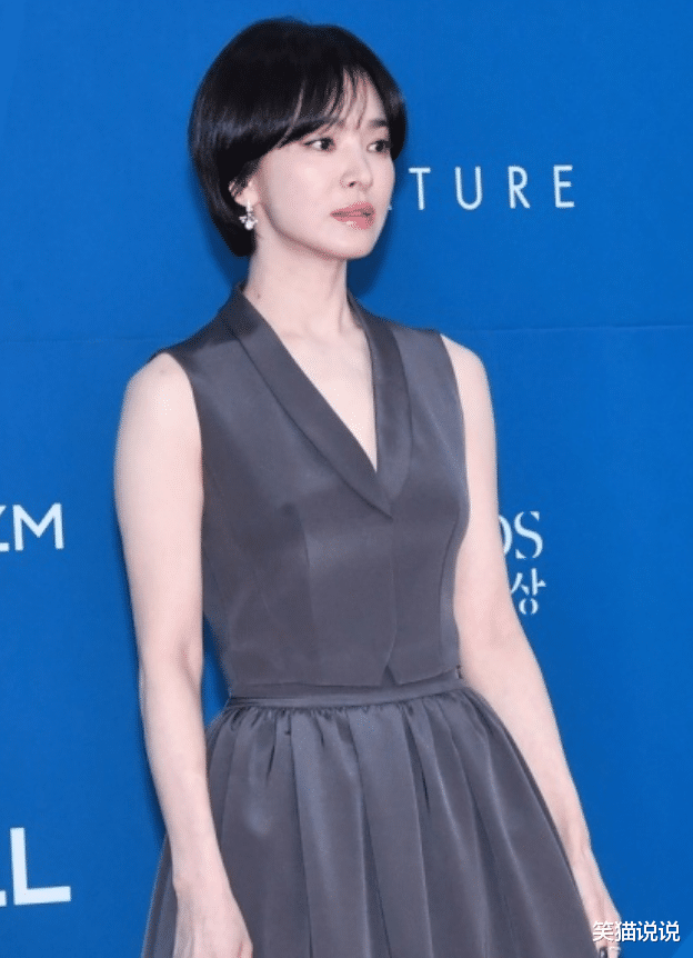 5月5日,韩国百想艺术大赏如期举行,韩国娱乐圈的艺人也如约出席。作为韩国大花的宋慧乔穿着一身灰色的无袖束腰套装裙亮相红毯,搭配中分短发,显得十分干练。不过,她在红毯上时不时露出甜美的笑容,带着几分甜味。