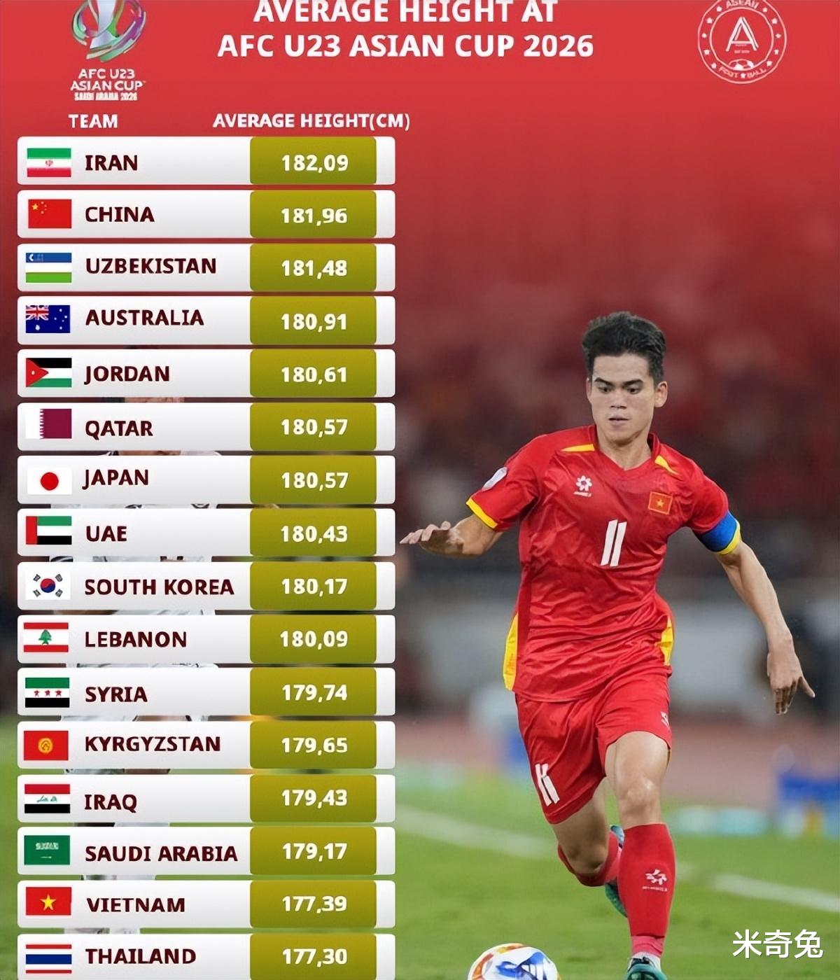 越南队的定位球也是他们的杀招,不过从身高上就能看到,U23国足比对手高出将近5公分,所以我们可以通过角球破门也不是偶然。