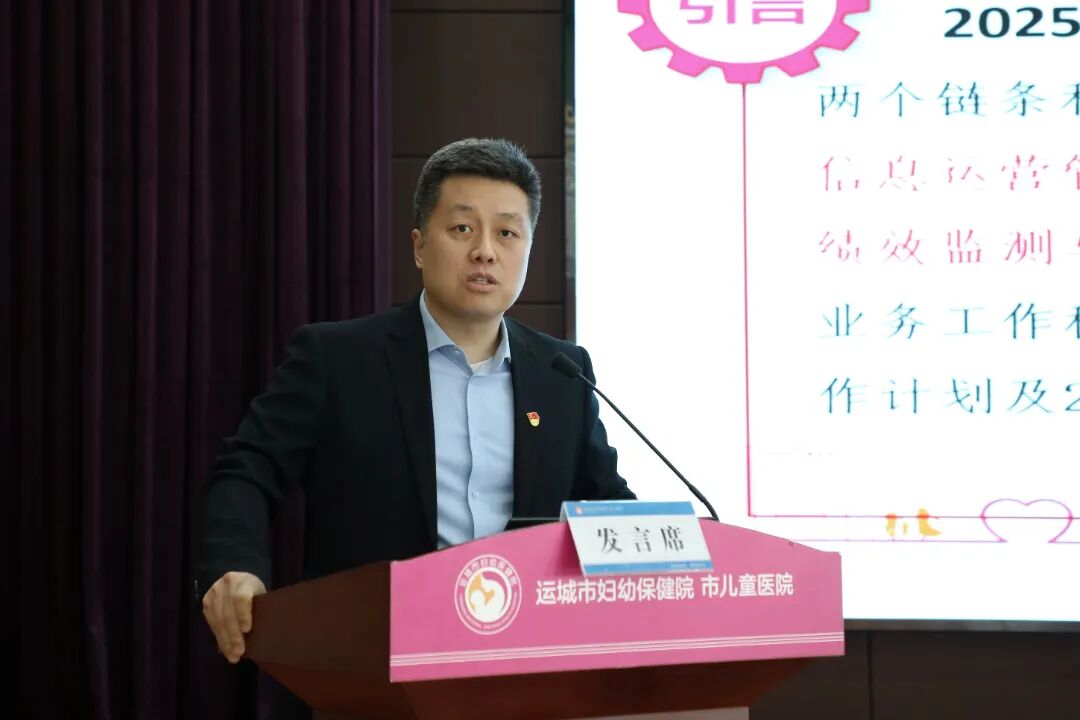 院长赵旭晶以《凝心聚力强根基 精护妇幼谋新篇——奋力开创医院高质量发展新局面》为题向大会作行政工作报告,就2025年取得的成绩和存在问题进行全面梳理总结,对2026年重点任务作出安排部署。提出要坚持以党建引领为根本,以学科建设为核心,以科教兴院为动力,以服务提质为抓手,以精细管理为支撑,以人才引育为保障,以文化铸魂为底色,紧扣“妇女生命全周期、儿童生长全过程”服务链条,全面对接“健康中国建设、人口高质量发展”两大战略,守正创新、团结奋进、实干笃行,奋力开创医院高质量发展新局面,为全面建设富裕、文明、幸福的好运之城筑牢妇幼根基,确保“十五五”规划实现良好开局。