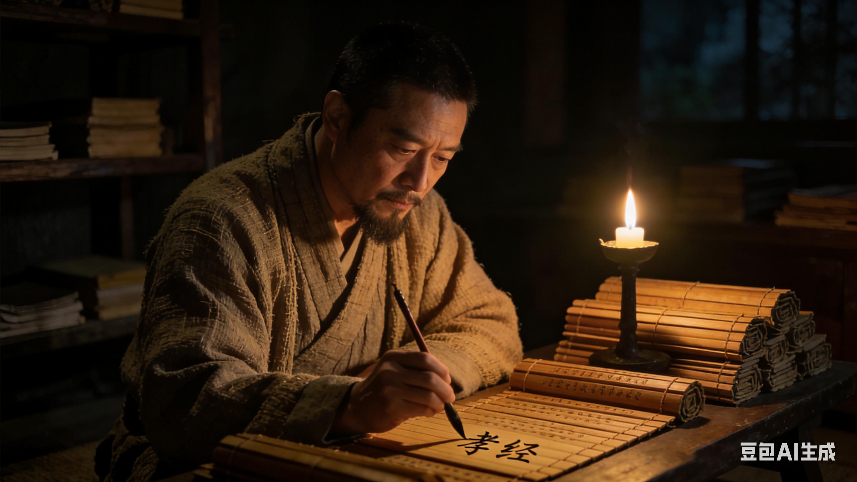 曾子编撰《孝经》时,已是中年,他端坐于书房,竹简铺陈,目光坚定,一字一句斟酌,语言平实却字字千钧。他的心理藏着宏大的愿景:春秋乱世,礼崩乐坏,父子相残、君臣相欺的乱象频发,唯有以孝道教化世人,才能修复人伦、安定社会。他希望以孝为纽带,让家庭和睦、社会有序、天下归仁。