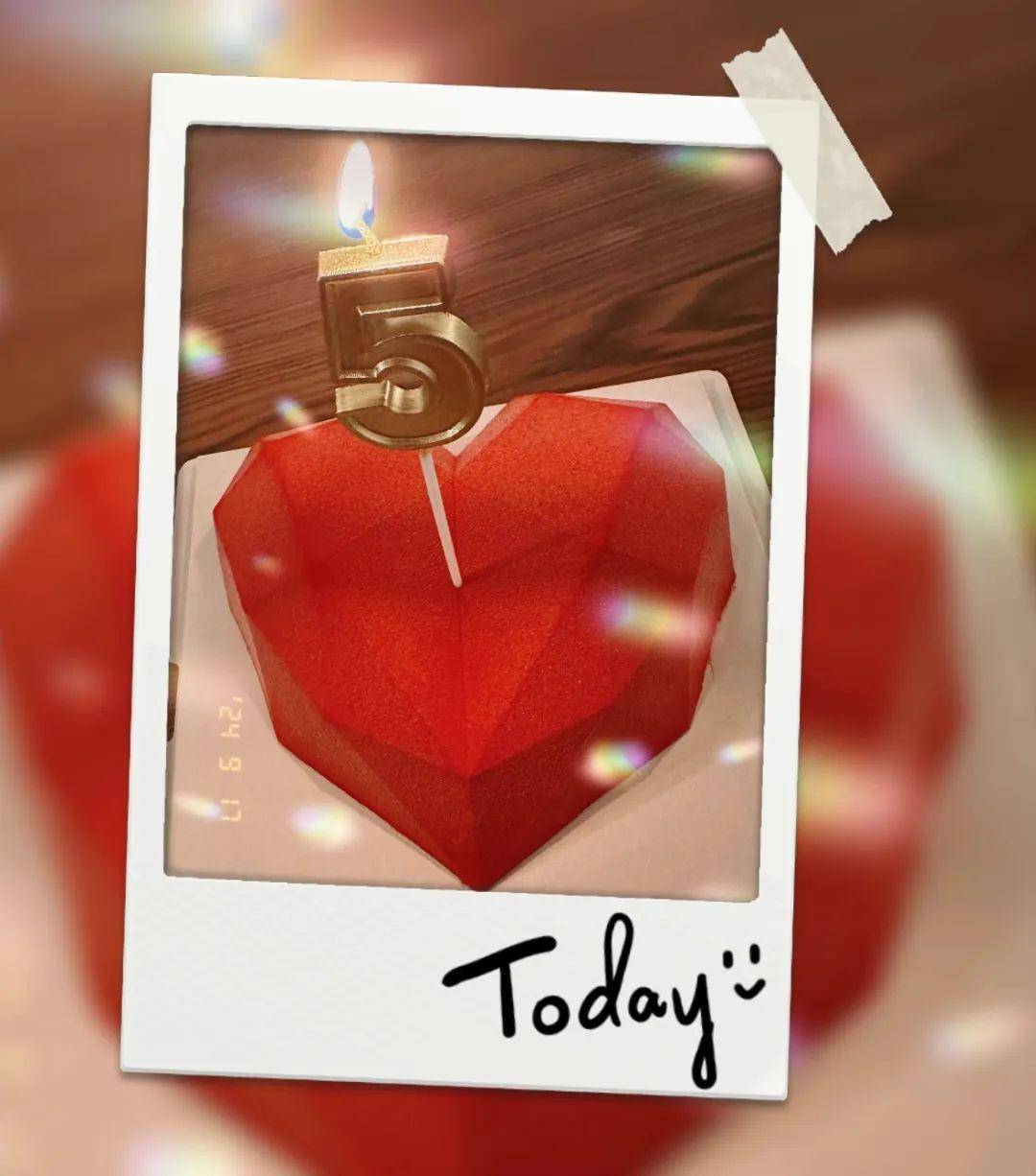 比如,分享庆祝结婚五周年的爱心蛋糕: