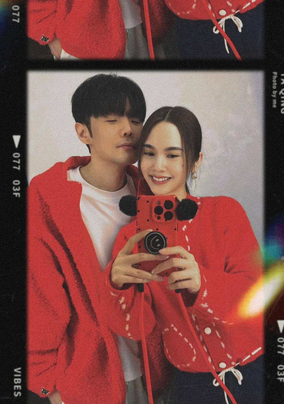 比如说,每年春节,他们都会发一张合照。穿着红色的家居服相互依偎,幸福和甜蜜几乎要溢出屏幕。