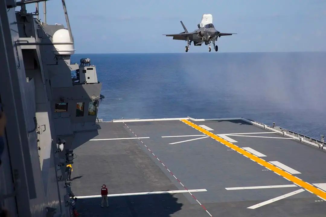 目前这个航母能搭载20架F-35,一次作战可以同时起飞12架战斗机,比美国的黄蜂级两栖攻击舰于美国级两栖攻击舰要强,和意大利加富尔级轻型航母相似。
