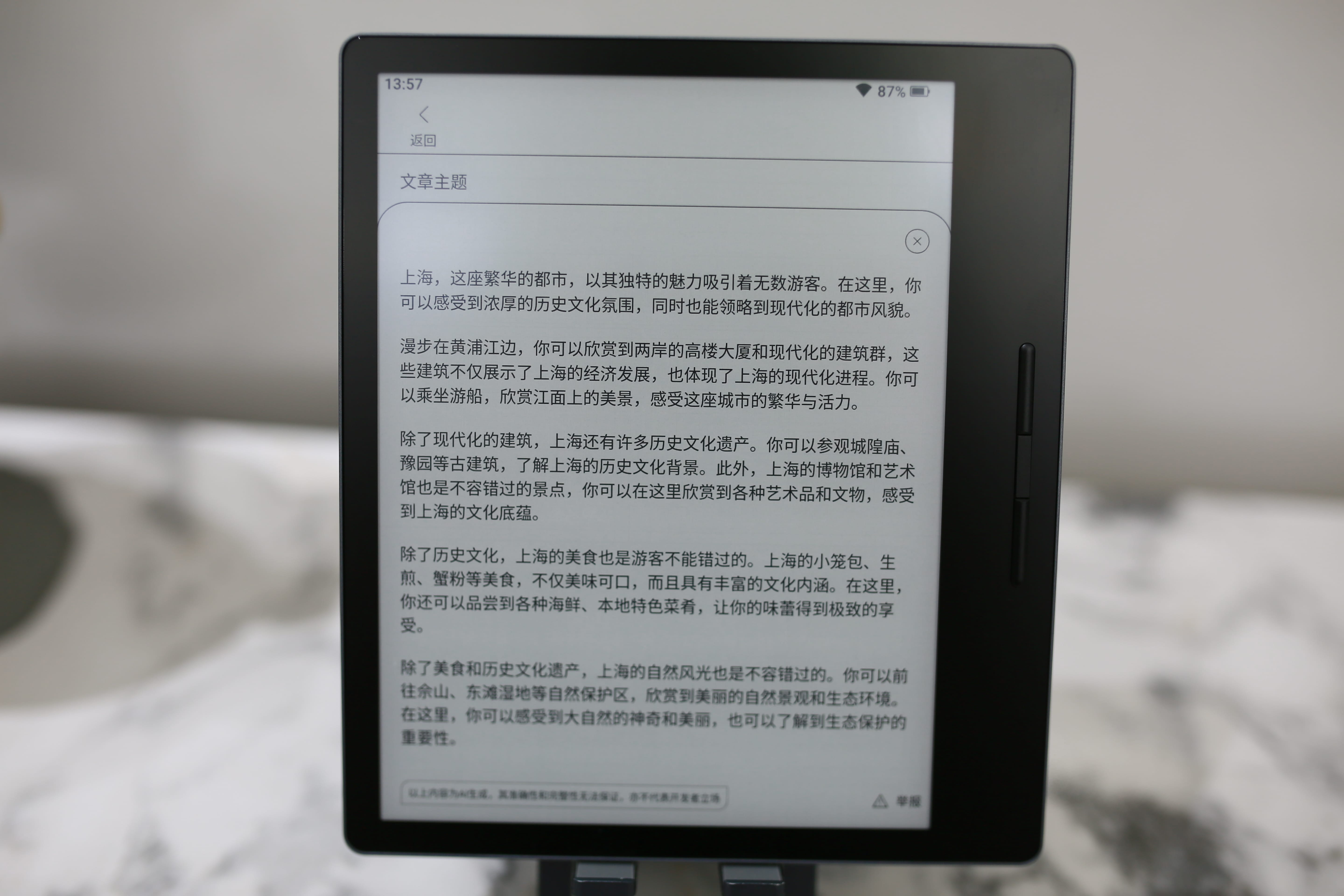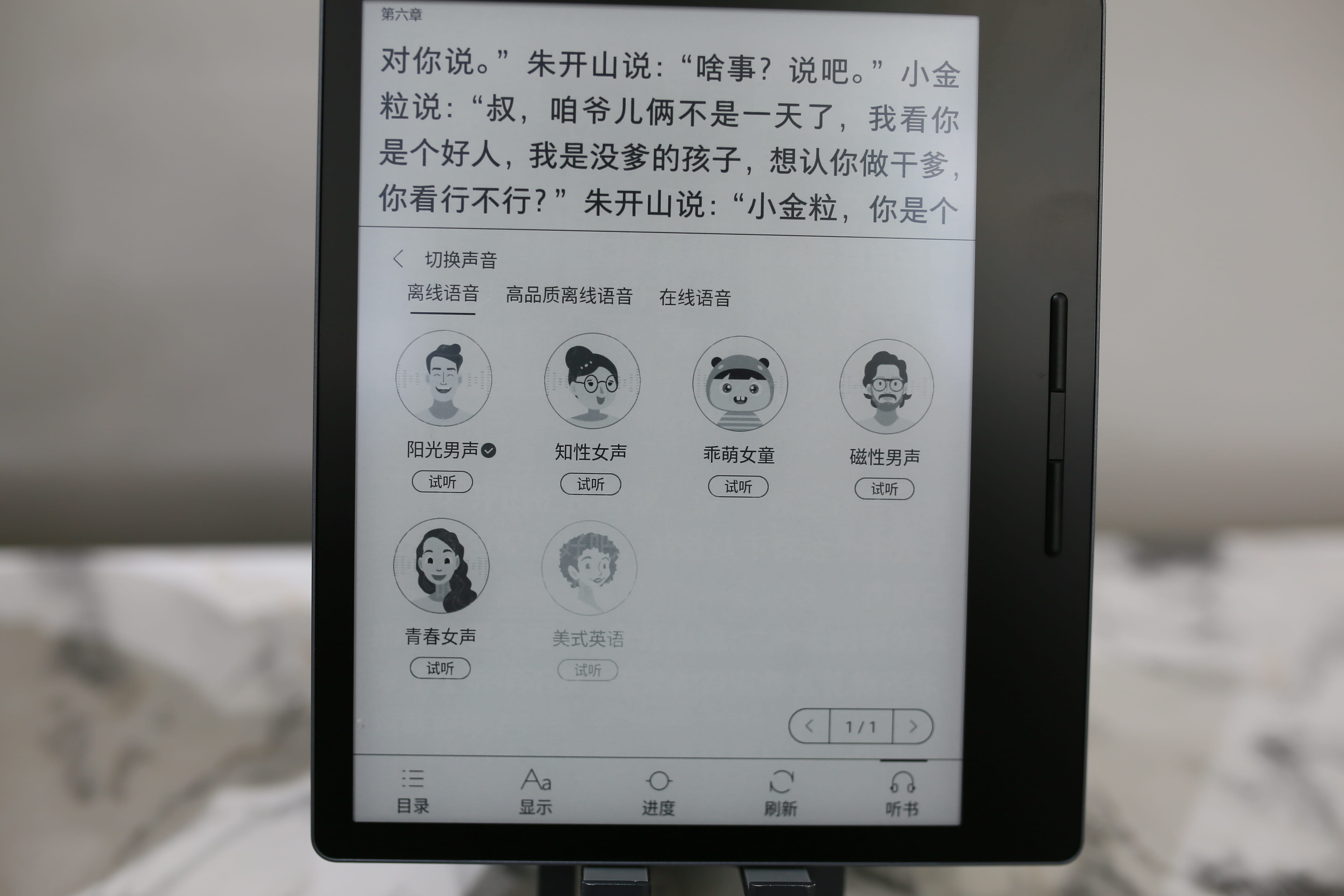 我在很多测评文章里写到了耳机,是的,耳机是我工作、生活、娱乐等等期间的必备品,所以,我也会用这款电纸书听书。汉王Clear7 Turbo 电纸书的五磁超线性扬声器我给满分,支持多种AI人声朗读,音质干净清晰,听起来非常自然。