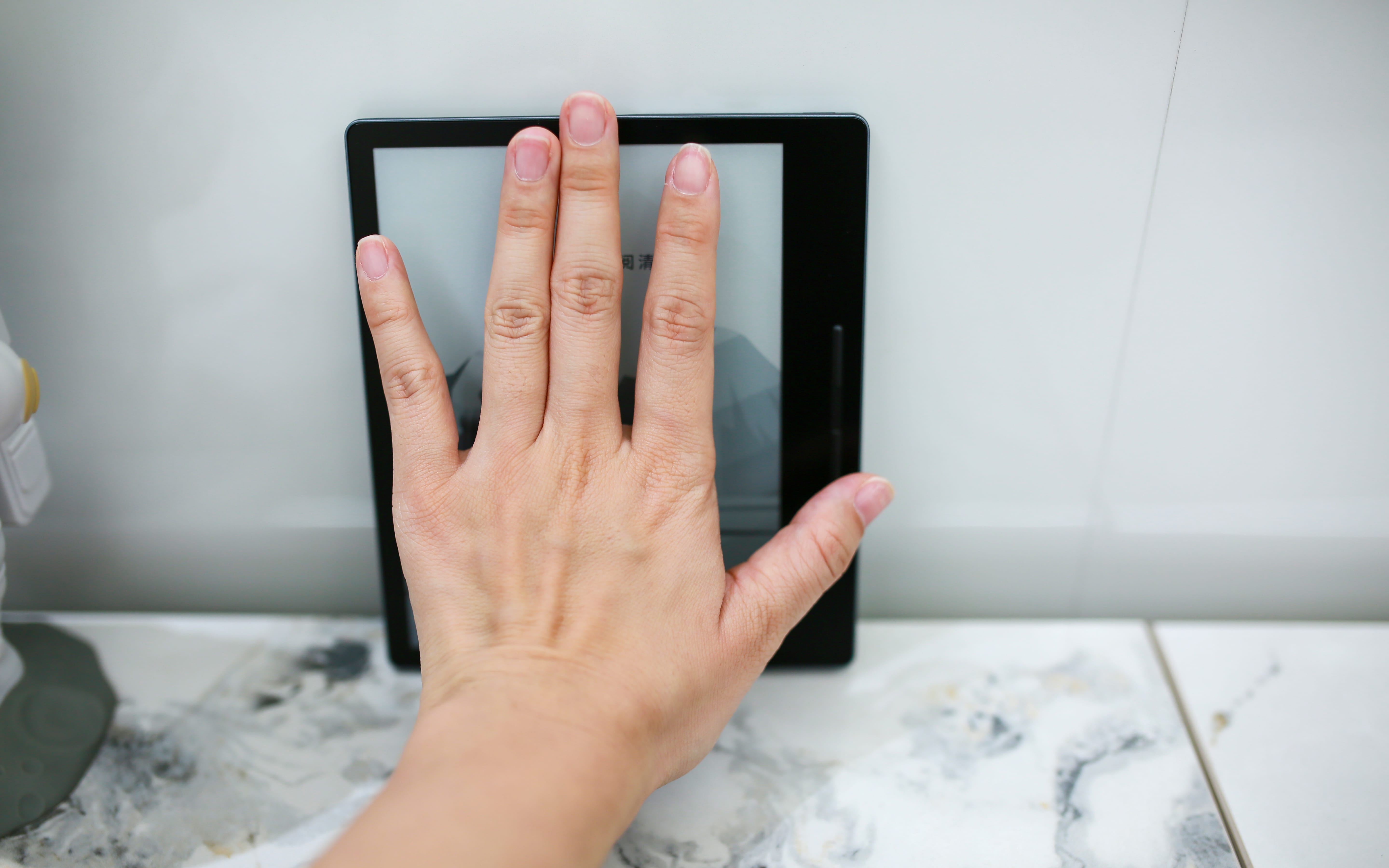 可以看到,电纸书要比我的手掌还要小一丢丢。