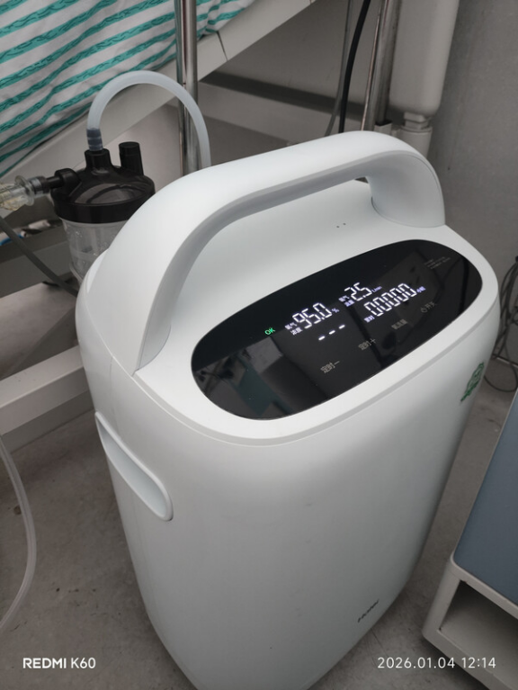 它的这个制氧机型号平时放阳台,机身不重搬动方便,出气管够长能伸到卧室,氧气不冲老人用着尚可。技术采用PSA制氧(变压吸附),两个分子筛塔交替工作持续供氧,前置过滤滤掉大颗粒粉尘。不过梅雨季用的时候,氧气浓度偶尔跳一下有点不稳,关了再开又好,可能和环境湿度有关。