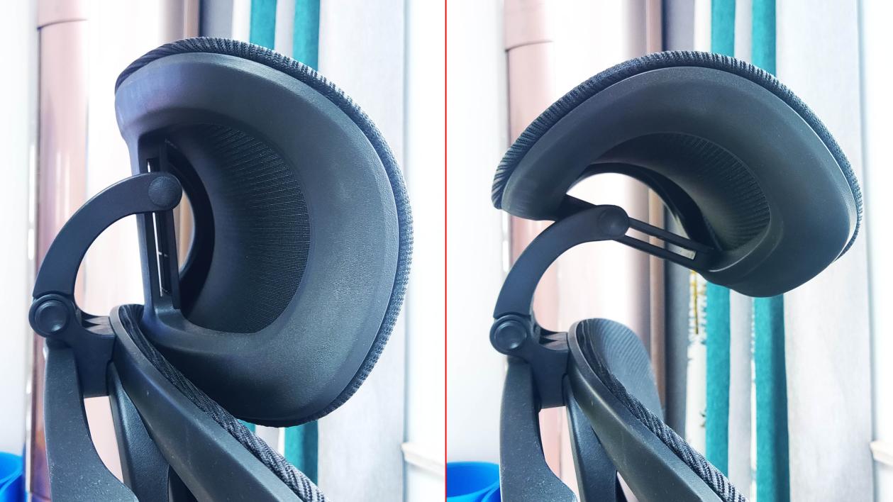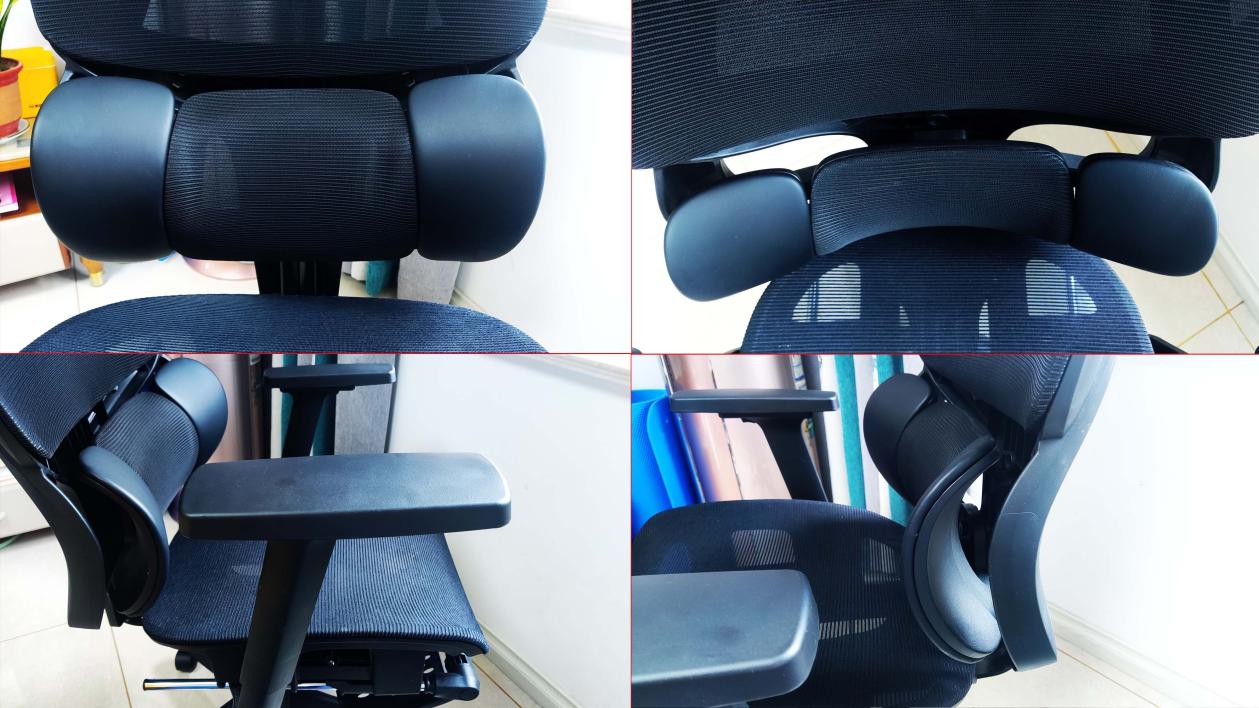 座椅释压枕的支架可以40°旋转(支架底部有开关),头枕可以60°旋转,还能上下滑动5cm。这种3D设计,可以让颈椎更加贴合舒适。