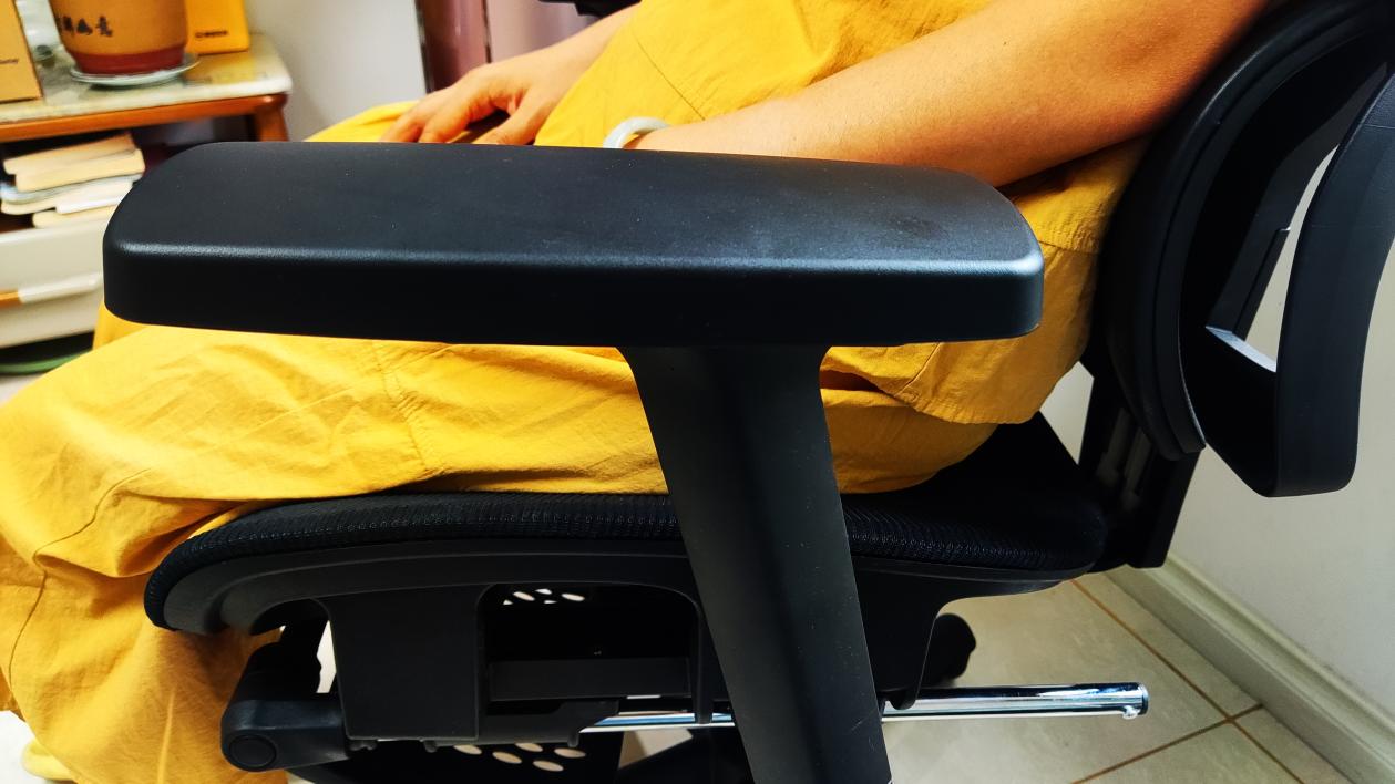 座椅的扶手,可以360°旋转,也能前后调节,甚至还能上下调整高度。不论个高还是个矮、臂长还是臂短,扶手均能舒适的支撑小臂,从而减轻肩膀负担。
