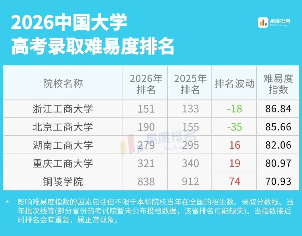 报考建议随着全国高校竞争格局的变化和考生选择行为的理性化,各“工商大学”的录取分数线可能出现进一步分化。基于当前趋势,浙江工商大学和北京工商大学虽然排名有所下降,但其优质的教育资源和地域优势仍将吸引高分考生,2026年分数线预计保持稳定或小幅波动。湖南工商大学和重庆工商大学排名上升明显,尤其是湖南工商大学上升16名,这可能会带动2026年报考热度和录取分数的温和上升。而对于铜陵学院来说,如果其“工商一体化”战略持续深入实施,并获得更多政策支持和资源投入,尤其是更名“工商大学”的进程取得实质性进展,那么2026年的录取分数线有望继续上涨,涨幅可能在5-10分左右。值得注意的是,2025年高考录取中已经出现了明显的“选择逻辑”变化,考生不再盲目追求“名校光环”,而是更加看重专业的实用性和就业前景。这对以应用型人才培养为目标的铜陵学院来说是一个积极信号。