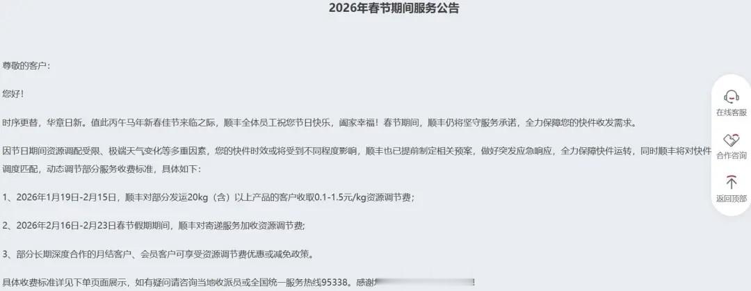然而,在民生保障的外衣之下,企业的商业考量同样不容忽视。春节期间的“流量红利”成为行业竞争的新战场,电商平台将“全年无休”作为核心营销噱头,通过绑定快递公司的服务承诺抢占市场份额。京东物流与顺丰作为行业头部企业,“不打烊”既是响应平台要求的无奈之举,也是巩固品牌形象、扩大市场占有率的主动选择。数据显示,春节期间坚持运营的企业能有效提升用户粘性,而加收的资源调节费(顺丰0.1-1.5元/公斤、京东物流0.1-1.2元/公斤)则在一定程度上覆盖了春节期间的高运营成本,形成“服务不中断、收益有保障”的商业闭环。