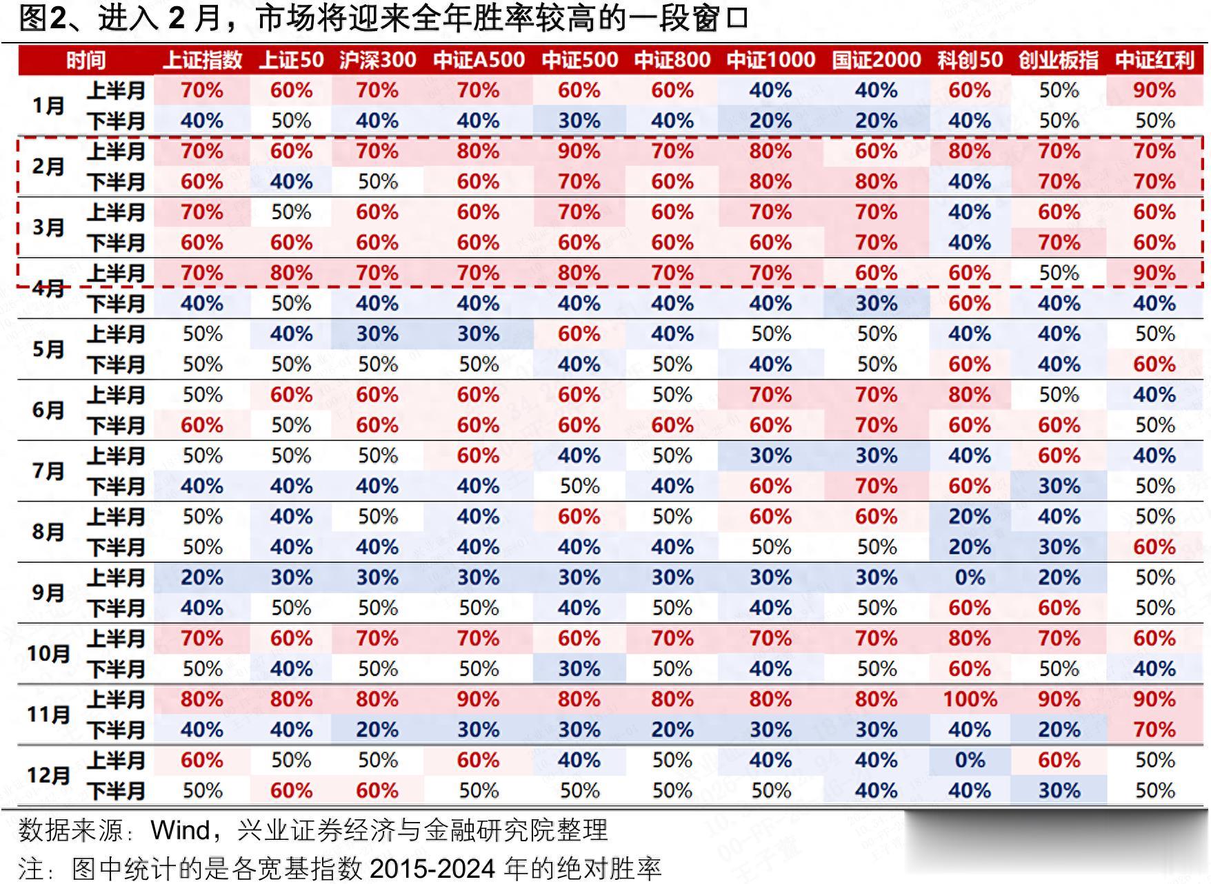 马上就要来到2月份,刚好周末,复盘看了一下,2 月份在 A 股历史上属于市场活跃度相对较高、上涨概率相对可观的月份。