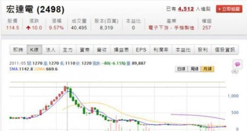 2011年4月,HTC的股价达到巅峰,市值突破335亿美元,超过诺基亚和黑莓,仅次于苹果,短暂登上全球智能手机市场的顶峰。