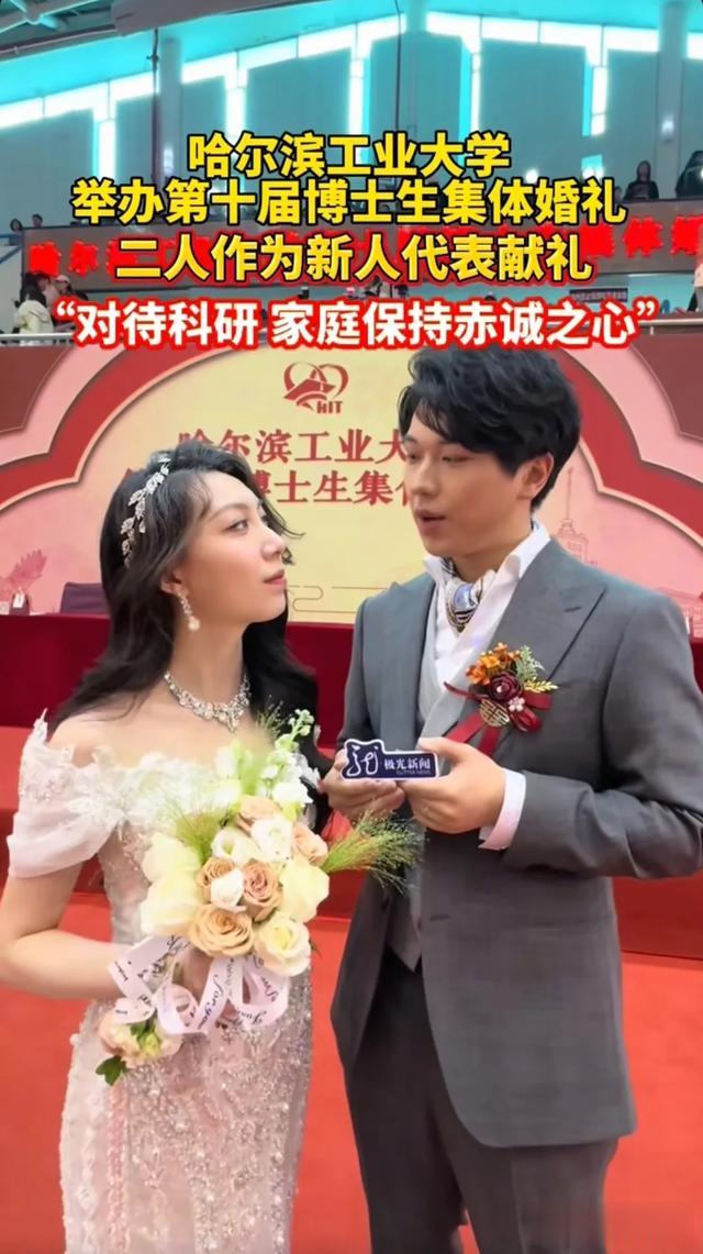 情感方面过于理性,缺少浪漫。但这些博士用自身例子说明,知识分子的浪漫可以深入生活本身。既有对彼此事业规划的尊重支持,也有将兴趣相投转换为长期陪伴的能力。不止于情感经历,他们也在婚姻仪式中注重个性表达,从穿着到仪式环节,每个细节都体现专属于哈工大人的谨慎和创新。值得关注的是,参与新人中不乏跨学科组合,这在知识融合日益重要的今天也彰显了开放与包容。