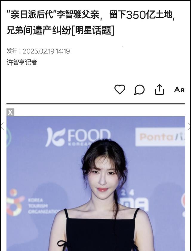 韩国女星李智雅最近陷入了家族继承纷争的漩涡。