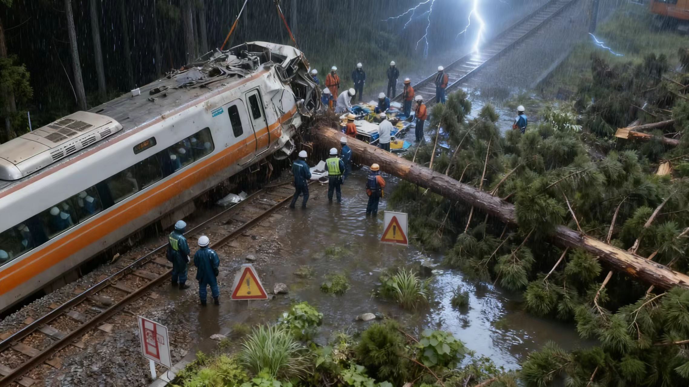 据当地警方及消防部门通报,涉事列车为开往角馆町的快速列车,当日为首发班次,发车约5分钟后便发生事故,铁路工作人员发现列车失联后迅速报警,救援人员随即赶赴现场开展处置,成功将被困司机从翻覆车厢中救出。现场勘查显示,铁轨附近有杉树倒伏,初步推测事故或与列车撞上倾倒树木有关,具体原因仍在警方进一步核实调查中。