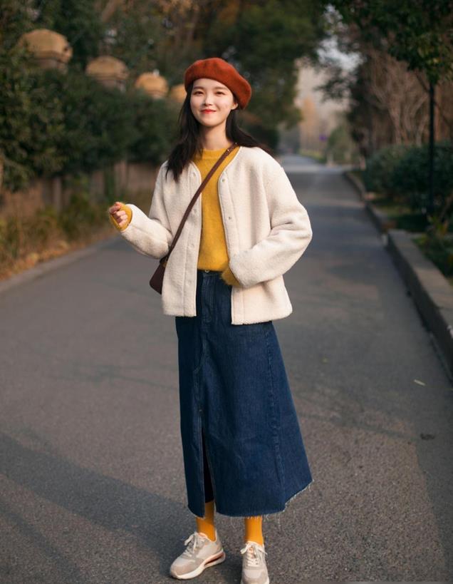 搭配内搭以裙子为主,如果想要展示甜美可爱的少女感,可以选择搭配裙子,但是要避免与面包服过于对比的设计,要保证整体融合性;