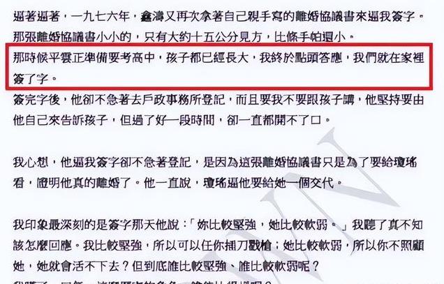 平鑫涛的遗嘱上写着把用毕生心血创办的皇冠杂志社留给前妻生的三个子女,把所有的财产留给子孙。