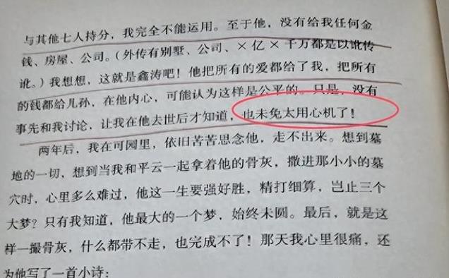 她的丈夫平鑫涛尽管已经去世5年,他的遗嘱仍然被扒了出来引起广泛的关注。