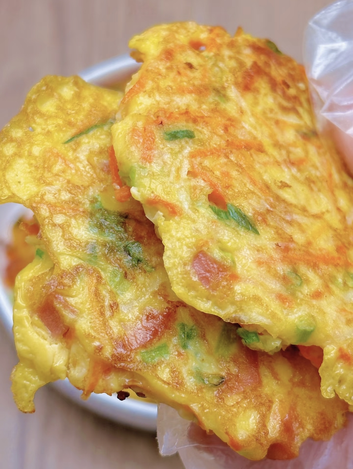 接下来就是煎制的过程,这也是萝卜饼形成独特风味和口感的决定性一步。平底锅预热,刷上一层薄薄的食用油。将揉好的面团分成大小均匀的小剂子,用手掌轻轻按压成圆饼状,放入锅中。用中小火慢慢煎制,期间可以适时翻面,让两面都煎至金黄酥脆。随着温度的升高,萝卜的清甜、葱花的辛香、鸡蛋的醇厚以及面粉的焦香,在热油的催化下完美融合,散发出令人难以抗拒的诱人香气。当萝卜饼两面金黄,用铲子按压感觉有弹性时,就可以出锅了。