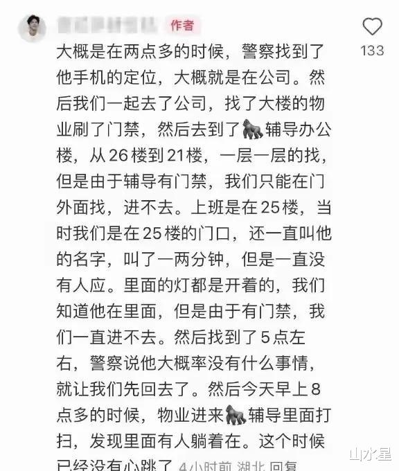 生老病死,人之常情,但年轻生命的逝去,总是更令人痛惜。让我们记住这个年轻人的故事,珍惜当下,热爱生活,学会平衡工作与生活,照顾好自己的身体,不要让悲剧再次上演。 愿天堂没有加班,愿他在另一个世界,能够拥有幸福和安宁。