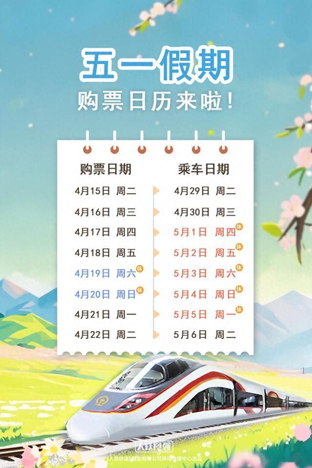 五一铁路购票日历来了,今天可买4月30日火车票,明天可买5月1日火车票。今年“五一”你打算去哪玩?转存购票日历。