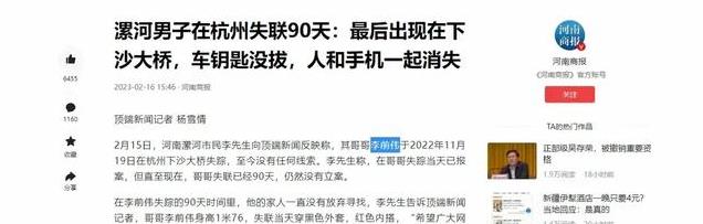 这事儿还没完,越咂摸越让人心里发毛,后背发凉。为啥呢?有人正挠着头苦思冥想呢,突然一拍大腿,想起了两年前发生在杭州下沙大桥的一起失踪案。那失踪的主人公叫李前伟,是河南漯河的一个 33 岁汉子。下沙大桥,那可是横跨钱塘江的交通“巨龙”,南来北往的车辆多得像密密麻麻的蚂蚁搬家,热闹非凡。可就在这么个关键的“嗓子眼儿”地段,监控居然也掉链子,出现了盲区。李前伟失踪那天,他的车就跟个被遗弃的孤儿似的,孤零零地停在下沙大桥的应急车道上,车钥匙明晃晃地插在上面,都没拔下来,双闪还跟个信号灯似的,一闪一闪,仿佛在无声地呼喊着:“我这儿有事儿,快来人啊!”再瞅瞅车里,好家伙,背包、电脑、钱包、银行卡、身份证啥的,都整整齐齐地躺在那儿,唯独人不见了踪影,手机也跟着一块儿消失得无影无踪,就跟被一阵妖风卷走了似的。