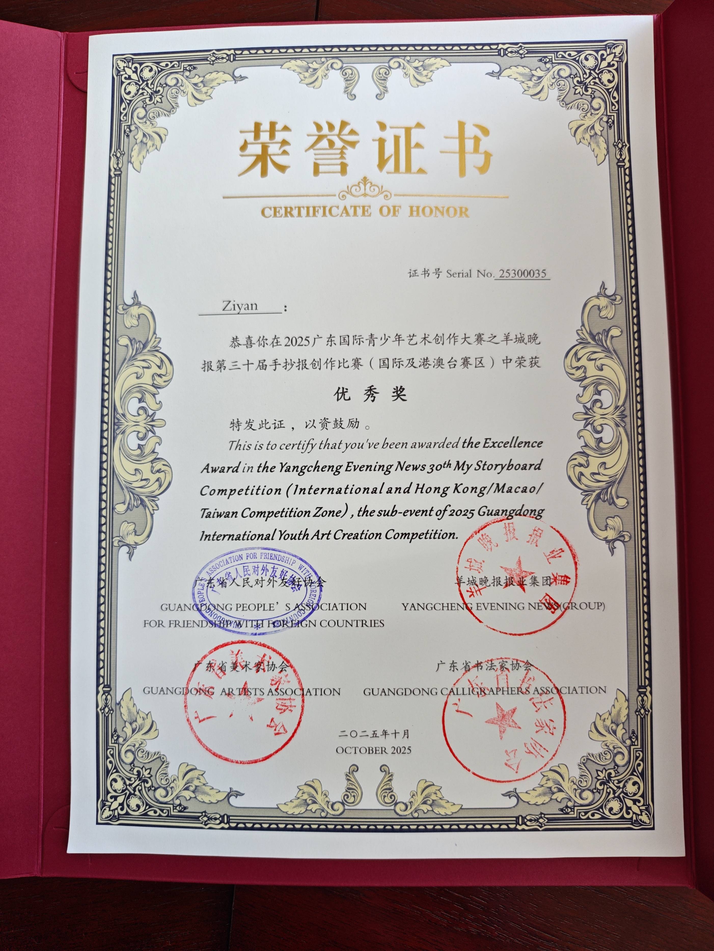 近日,2025“粤友杯”广东国际青少年书画比赛暨 羊城晚报第三十届手抄报创作比赛(国际赛区)圆满落幕。赛事以艺术为纽带,吸引全球青少年广泛参与,展现了中外青少年交流互鉴的蓬勃活力。