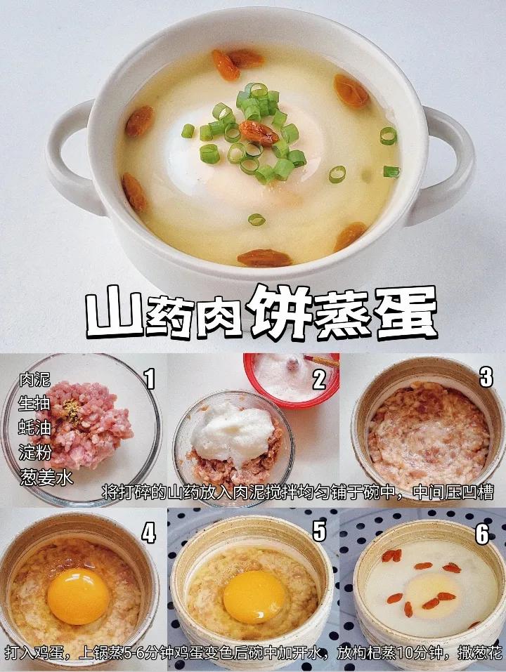 2・鲜香山药肉饼蒸蛋:补 B 族维生素 + 黏液蛋白,缓解脑疲劳