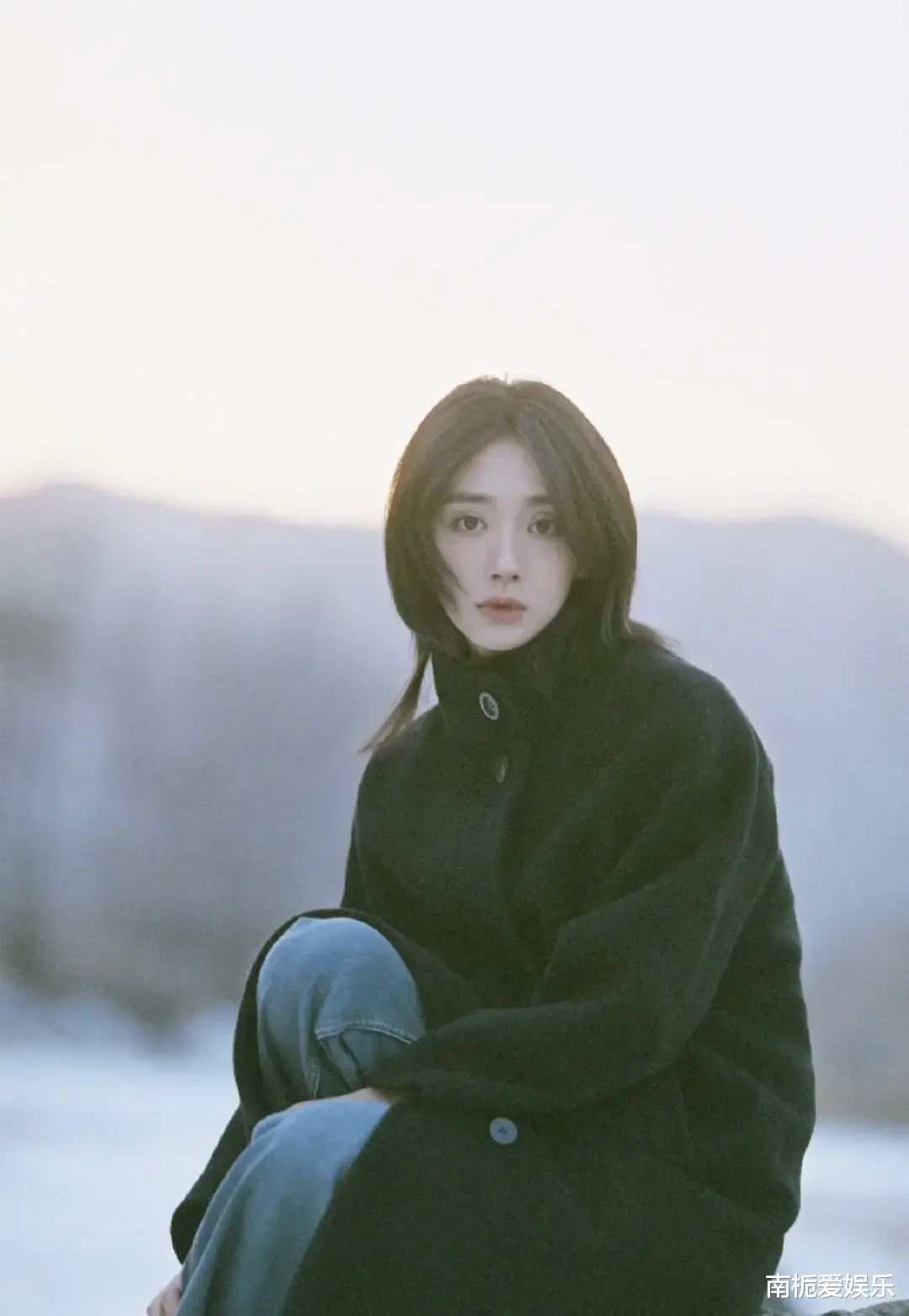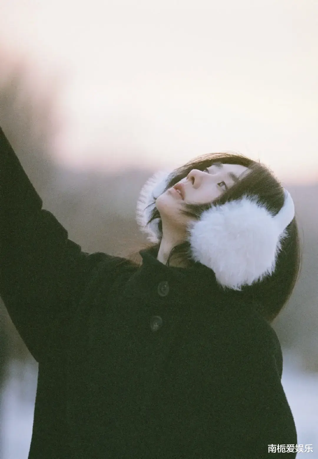 纯白的雪景与暖橘色的夕阳在画面中形成鲜明的冷暖对比,赋予了照片极佳的层次感。摄影师采用逆光拍摄,让夕阳的余晖穿透发丝,晕染出一圈圈金光,显得既梦幻又朦胧。王影璐自身高折叠度的骨相与利落的下颌线,在自然光影的勾勒下,无需过多修饰便自带一种高级的胶片质感,仿佛是从老电影中截取的经典画面,充满了故事张力。