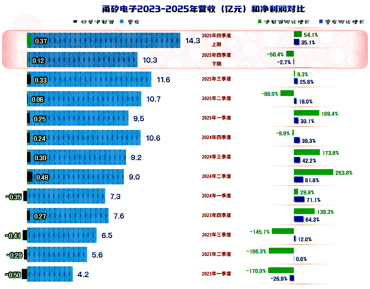 分季度来看,营收从2023年四季度开始增长之后,已经持续了两年,2025年四季度,从其预告的区间范围看,虽然有下跌的可能,但增长的可能性要大得多,也就是说,营收“螺旋增长”的趋势可能还将持续。