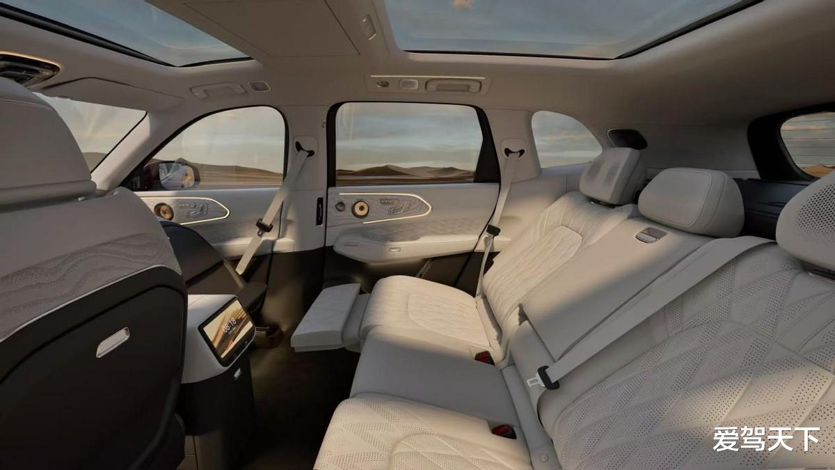 座椅用的是Nappa真皮,副驾给到了零重力座椅。后排舒适性也考虑得挺到位——靠背调节、座椅加热、小桌板都安排上了,就是不知道这些配置有没有可能全系标配?