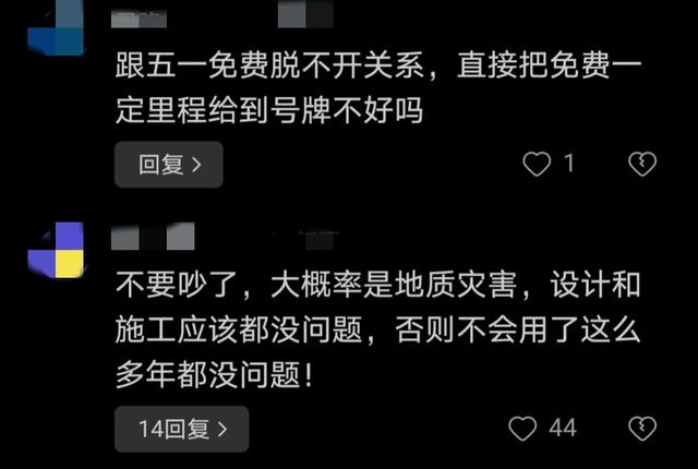 有网友认为,事故发生在五一小长假,高速免费,车辆众多,对路面的负荷加重。