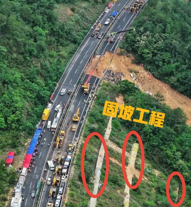 因为整条高速公路是穿丘陵的山腰而过,无论是里侧还是外侧,做好防固工程,防止内侧滑坡、外侧垮塌,是很重要的。