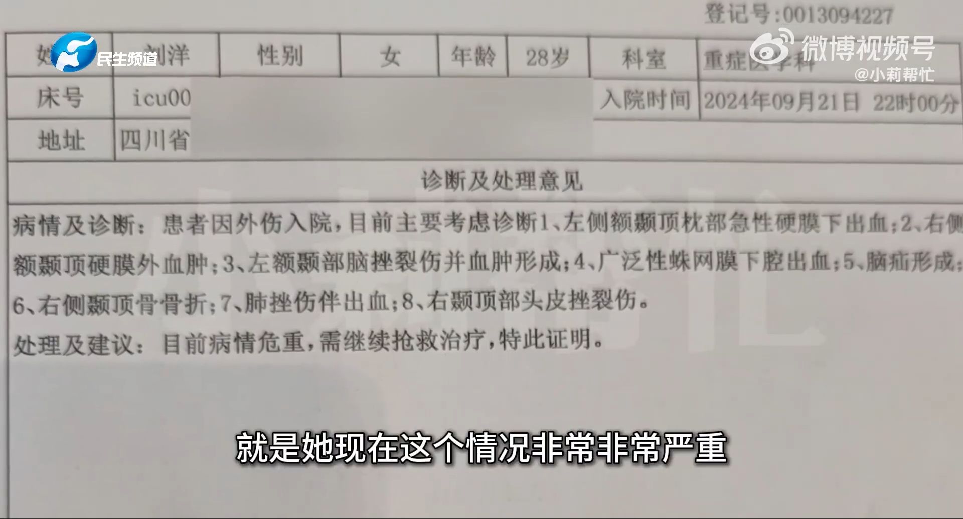 “我当时是身上擦破了皮,但是她头上戴了鲨鱼夹,后脑着地受力,头骨骨折。”虽然女友两次开颅手术后抢回了生命,但是却成了植物人。
