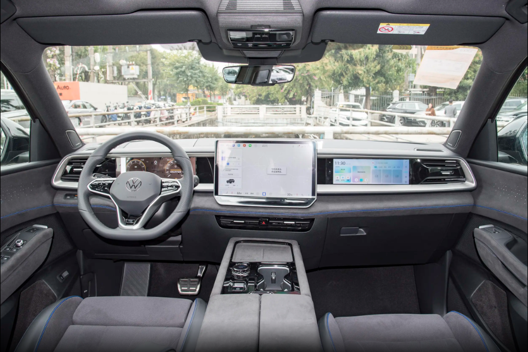 内饰方面:大众途昂 Pro的车内一改往日风格,主打的就是一个简洁,而15英寸中控屏幕、11.6英寸副驾娱乐屏、10.3英寸液晶仪表则为车内营造出更多的科技范。15英寸的中控显示屏内置高通8155处理器,不仅能实现基本的听歌、导航等功能,还能实现语音识别、方言识别、可见即可说等功能,并且在车机的流畅度方面也有所提升。