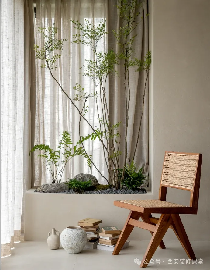侧面窗户下方花坛布局,刚好作为绿植小景,营造氛围非常好看