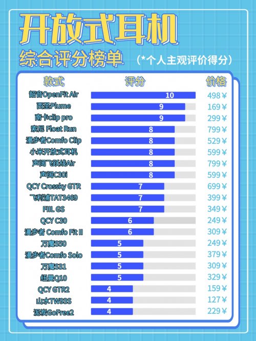 蓝牙耳机虽然带来了无线的便捷体验,但舒适性一直是用户关注的痛点。市面上常见的入耳式耳机虽能提供不错的降噪效果,但长时间佩戴容易导致耳朵肿胀不适;而开放式或挂耳式耳机虽然能缓解这一问题,但不少产品由于设计较重,佩戴久了会对耳廓造成压迫。那么,开放式耳机哪款最划算?面对市面上众多耳机产品,想要找到一款价格合理、佩戴舒适、音质出色的耳机并不容易。刚好我对开放式耳机这类产品非常感兴趣,最近也体验了几款高性价比的开放式蓝牙耳机。今天就来和大家聊聊平价开放式耳机排行榜前十名,看看哪款更适合你的需求!