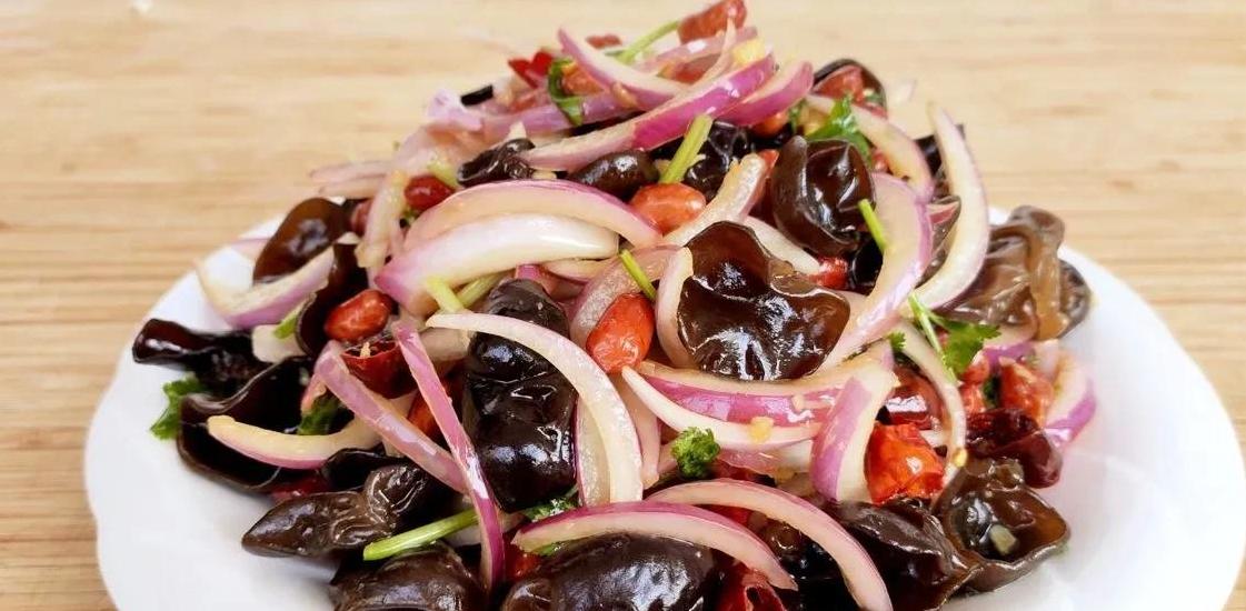 拌匀后,这道清爽开胃的洋葱拌木耳就完成了。