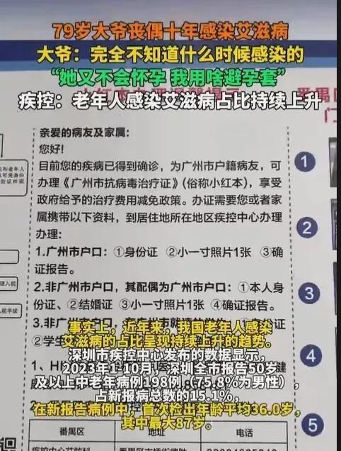 看看疾控中心给出的数据,情况真的不乐观。老年人艾滋病感染的比例一直在上升。就拿深圳来说,在 50 岁以上的艾滋病病例中,中老年男性占比达到了 75.8%,占总病例比例的 15.1%,而且年龄最大的都已经 87 岁了。